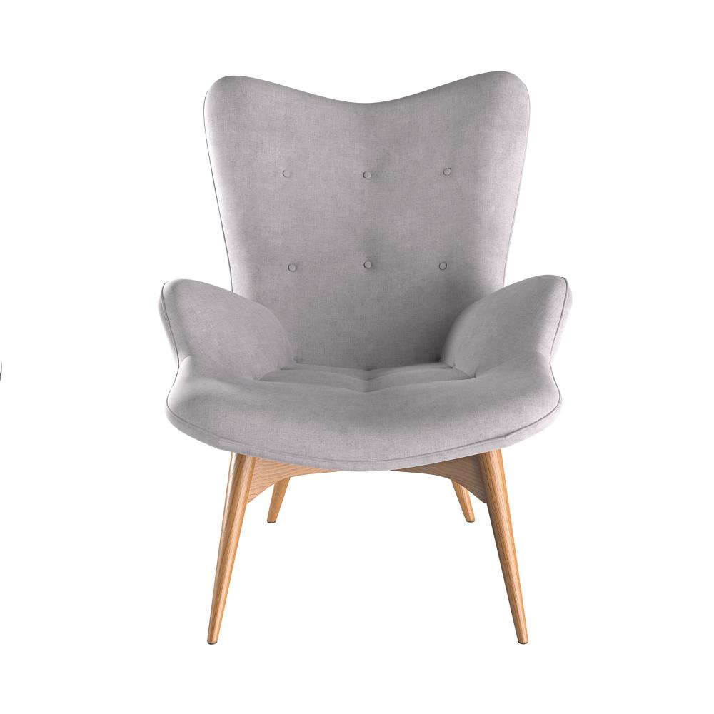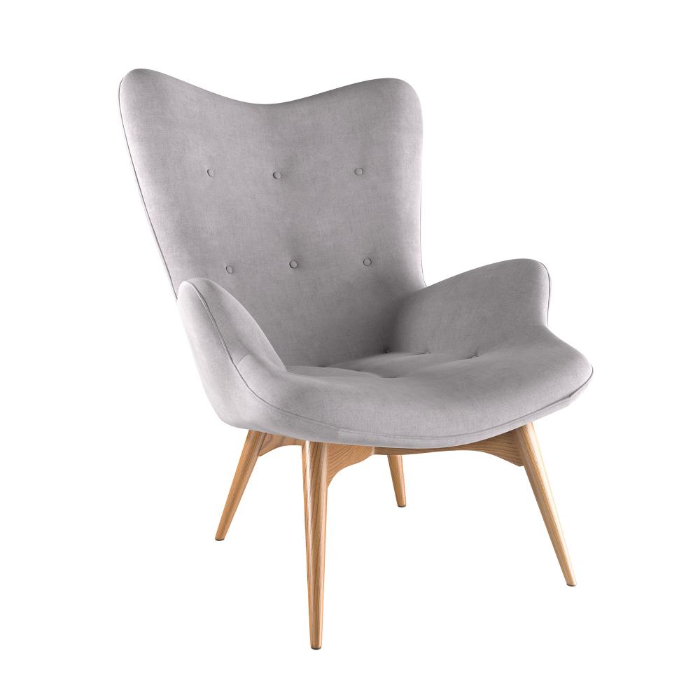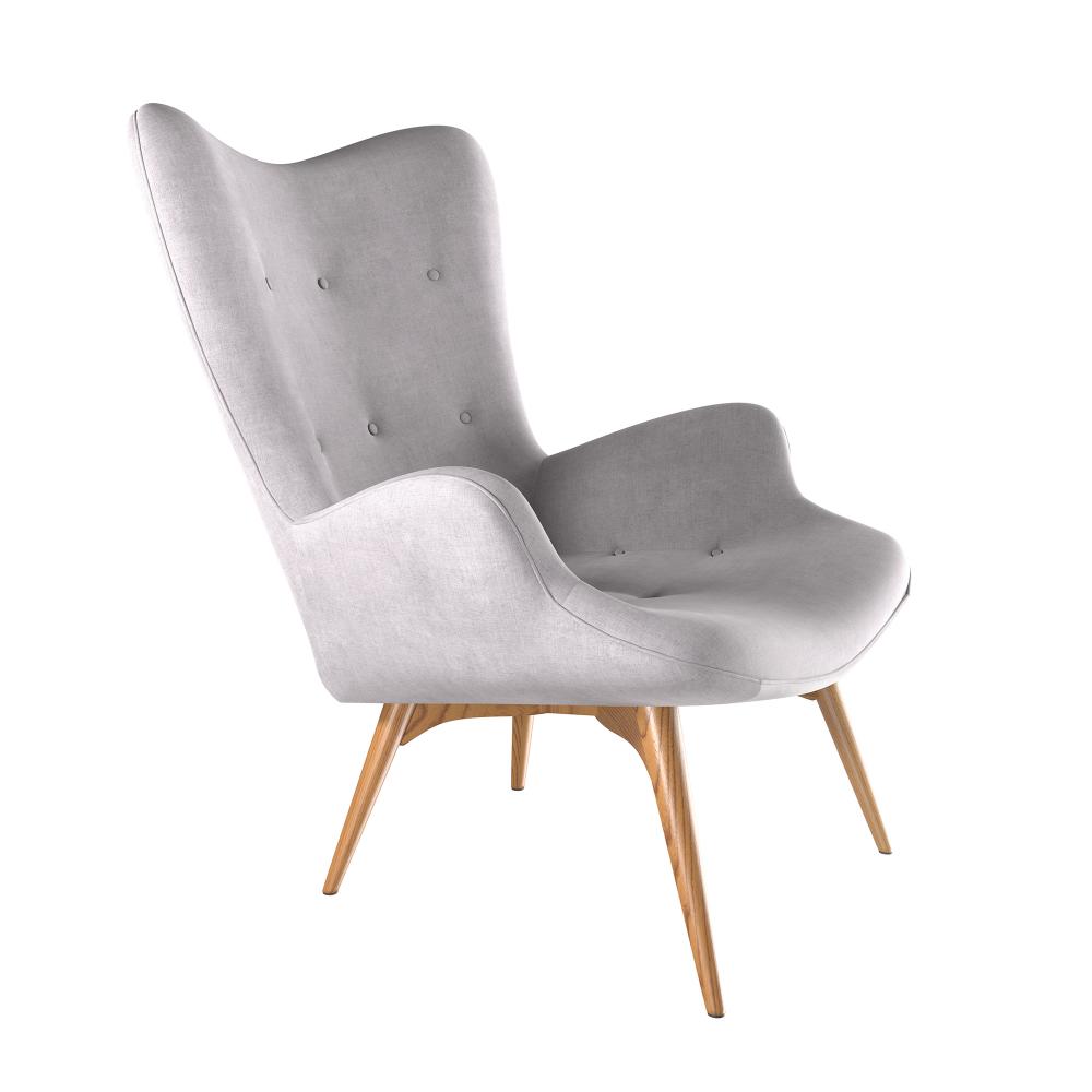 Grauer Sessel mit Eichenholz
